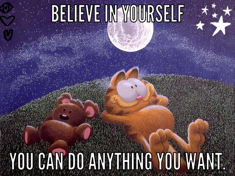 Your daily reminder from Garfield and Pooky: BELIEVE IN YOURSELF. You have everything it takes to do anything you want! 💖