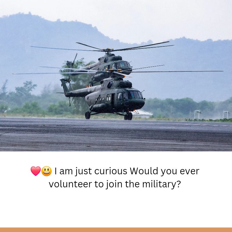 ❤️😃 I am just curious Would you ever volunteer to join the military?